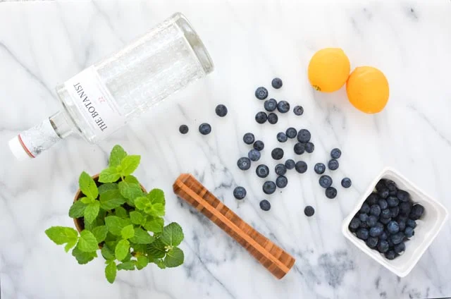 Just muddle together the blueberries, lemon and mint together. Add a tablespoon or two of simple syrup and a shot (or 2 of gin). Top off with soda water. It's so easy I can't really call this a recipe.