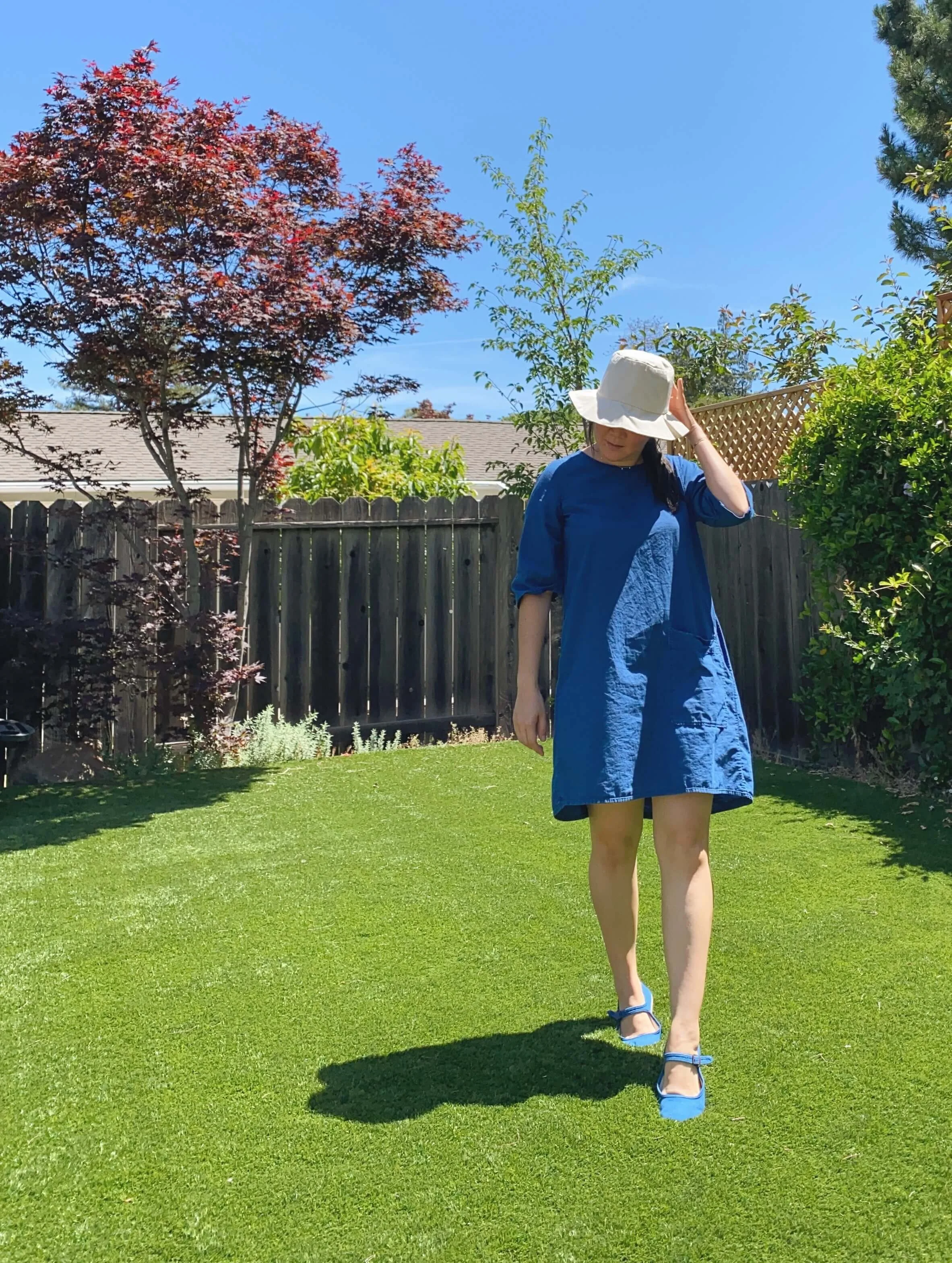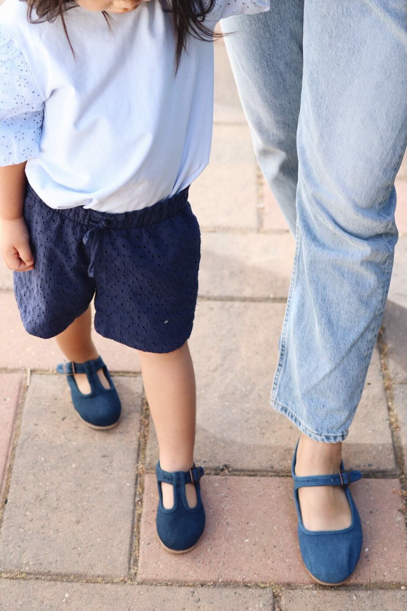 My first purchase was a pair of the rust colored Mary Janes (above) in March. I wanted both the indigo and the rust but decided to stick to just one first to see how I like them. Well as you can tell I must have liked them since I then purchased an indigo pair for myself and for Emi, along with a hat. I find the Mary Jane shoes to be super comfortable and love the breathability of the canvas material. I usually don’t care for shoes with a buckle but I find I can slip these shoes on and off without having to mess with the buckle. Unfortunately the shoes can’t be washed and only spot cleaned so I’m pretty careful with the rust colored ones (the darker indigo ones can hide stains better). But I did wear the rust colored mary janes to go cherry picking and the dirt from that fields blended well into the shoes.