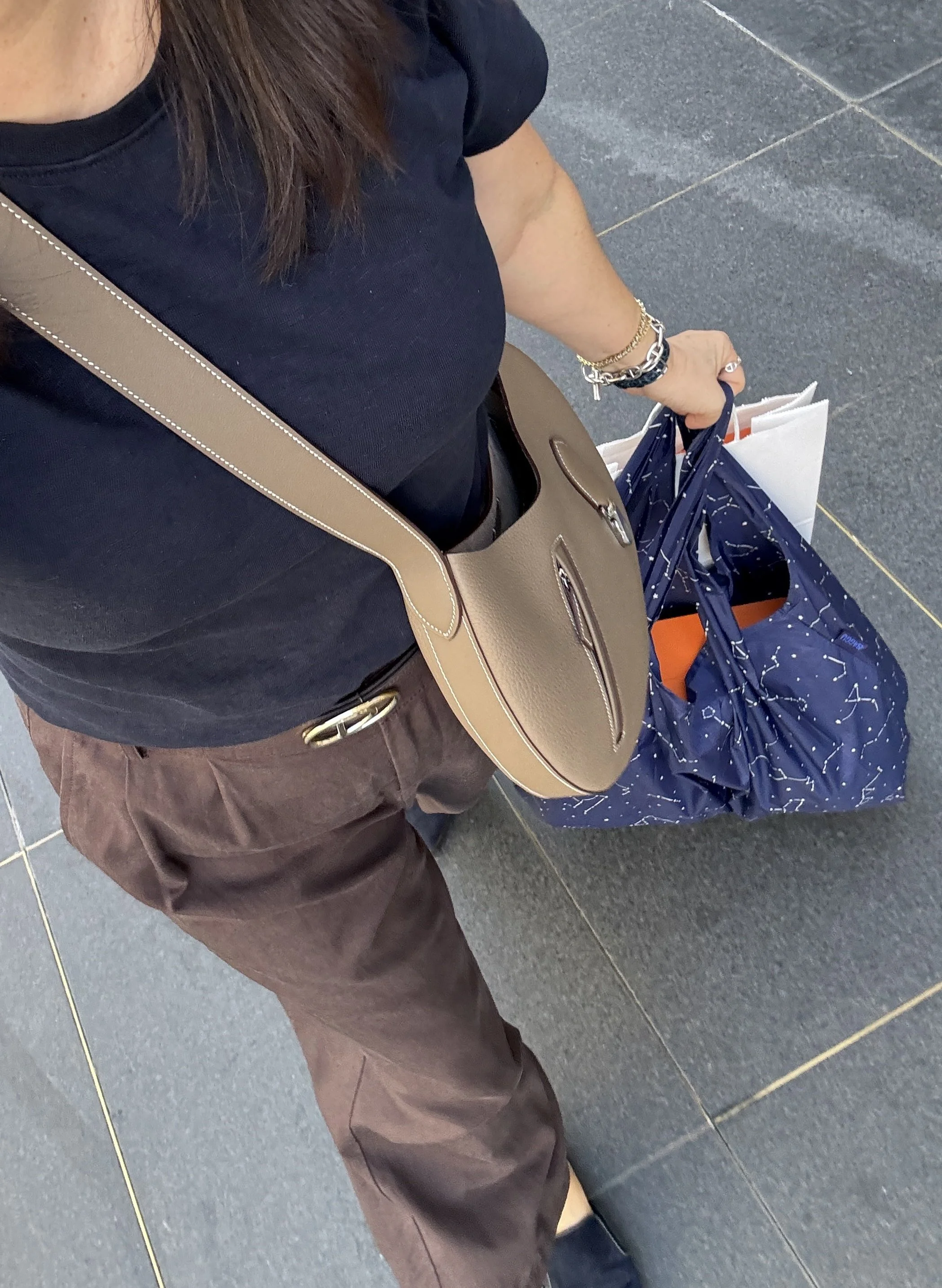 So even though I much prefer the Petit Arcon over the Slim, why didn’t I keep the Petit from Fashionphile? Unfortunately the color I got was Craie, which is basically an off-white. And as a crossbody bag, I don’t think white is a good choice. You just KNOW there’s going to be color transfer. I also already have one white bag from Hermes (a Lindy 26 in Nata), which I never wear because it’s white. The one time I took my Lindy out, I accidentally rubbed against my car and got black marks all over it 🤦🏻♀️ (luckily the leather wipe took most of it off, but not all). So now I’m on the hunt for a Petit Arcon not in white. I’m basically going to ask every Hermes boutique I go into or stalk the RealReal or Fashionphile until I find one close to retail price (I refuse to pay over retail for this because I know it’s not one of those bags that’s going to hold it’s value).